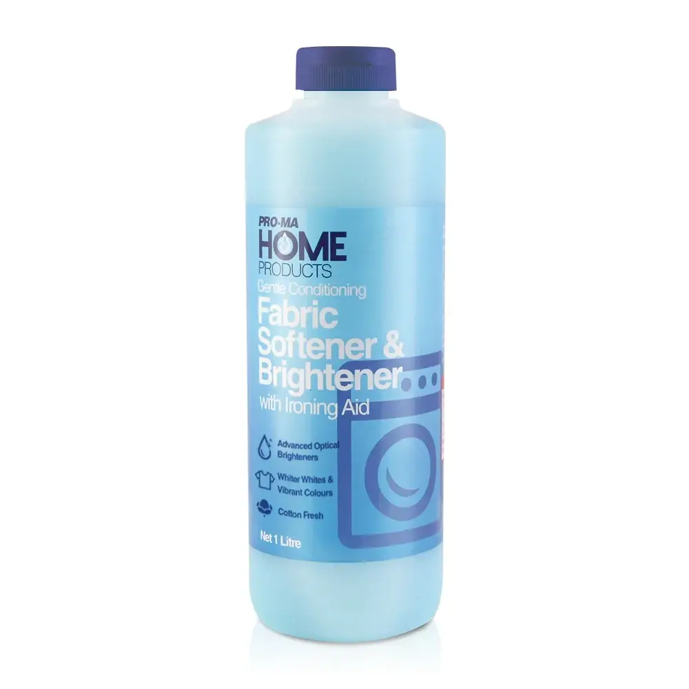 This super concentrated softener, conditioner and sanitiser provides extra brilliance to whites and colours during the final rinse cycle. Pro-Ma Home Products Fabric Softener & Brightener will not only leave your clothes softer, brighter and hygiencally clean but it will not cause fabrics to become waterproofed on successive applications or whites to yellow.